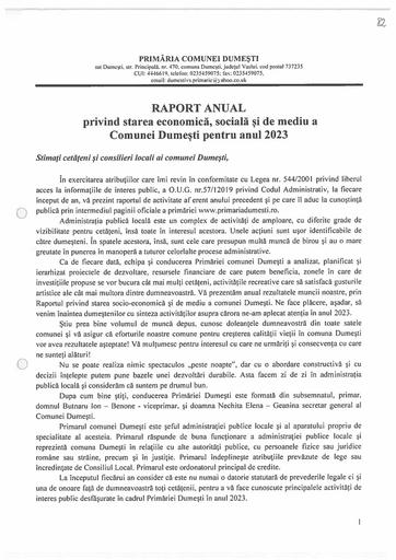 RAPORT ANUAL PRIVIND STAREA ECONOMICA , SOCIALA SI DE MEDIU A COMUNEI DUMESTI PENTRU ANUL 2023 – PRIMAR IONIȚĂ – BARNEA CIPRIAN.pdf